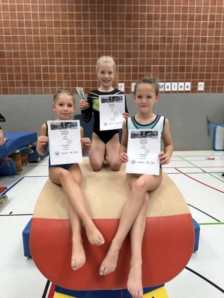 Aber auch die anderen Kürmädchen des TSV Vordorf zeigten tolle Leistungen. Sarah Trigo Humerez, Tessa Möhle und Carlotta Heidenreich gingen in der Bezirksklasse an den Start und sammelten viele Punkte für die Turnkreismannschaft. Insgesamt wurde die Mannschaft Bezirksmeister 2025.