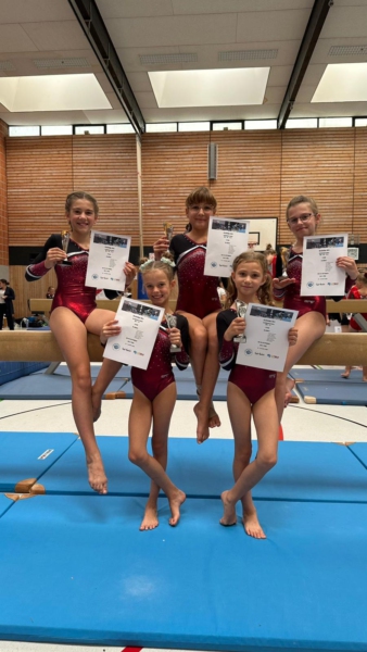 Beginnend am Sprung sicherten sich vor allem Tamira Ihnen, Lea Rauch und Hannah Lüdecke wertvolle Punkte für das Team. Am Stufenbarren zeigte Anna Ivanov eine besonders anspruchsvolle Übung mit Riesenfelgen und freien Felgen. Am Balken überzeugten Ella Michel und Emilia Warkentin mit fehlerfreien Übungen. Zum Abschluss punkteten Ann Yungi Wang sowie Lea Rauch mit ausdrucksstarken Übungen am Boden.
