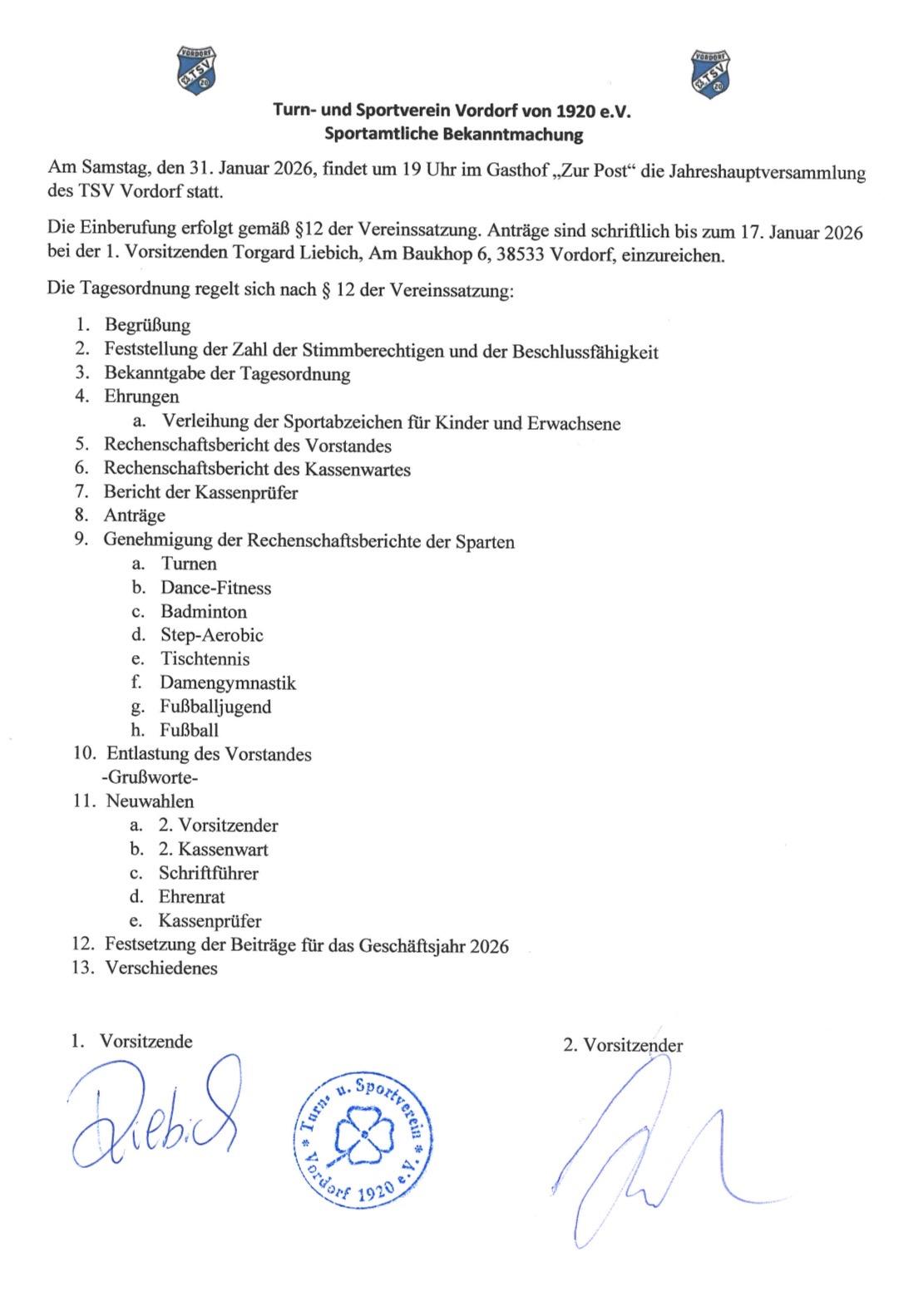 TSV Jahreshauptversammlung 2026